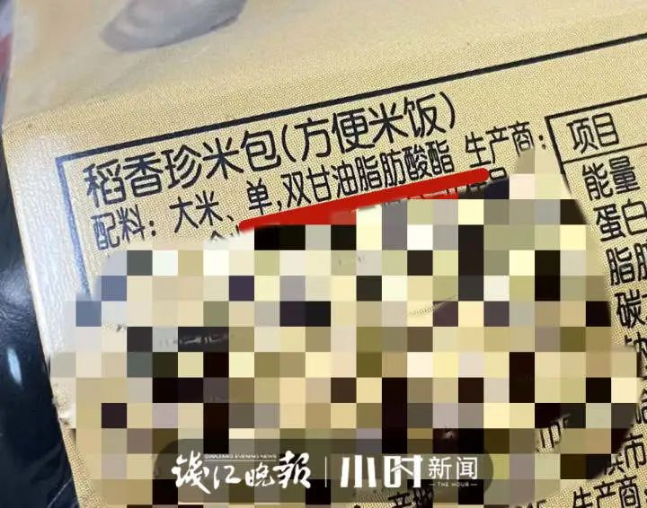 自热米饭的包装说明显示,自热米饭里最主要的成分是大米,还有单双甘油脂肪酸酯,有的还添加其它淀粉。“单双甘油脂肪酸酯”又是什么?